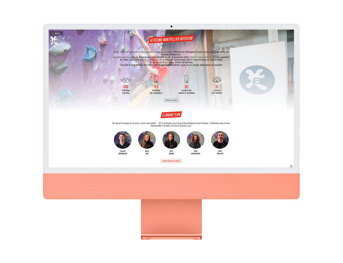 Leader français de salles d'escalade avec 10 salles, Altissimo est aussi constructeur de murs et créateur de prises et volumes d'escalade.