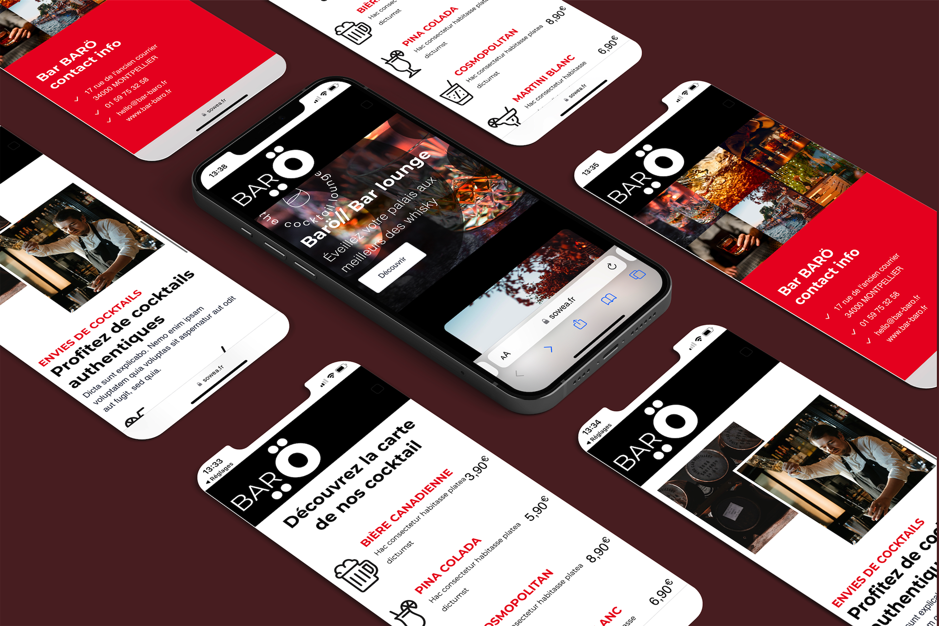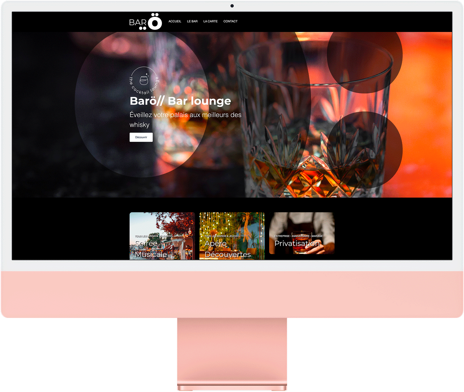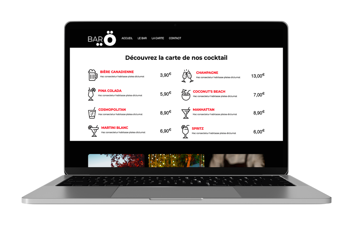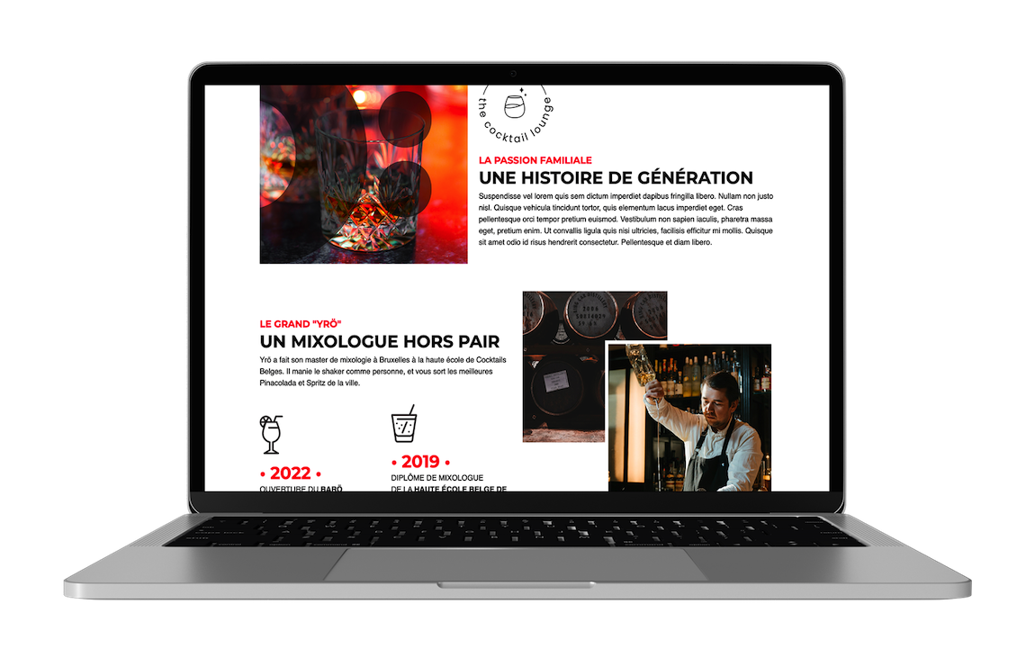 Le Barö nous a demandé de créer une charte graphique & web aussi travaillée que la décoration intérieur de leur bar. On a donc mit un point d'honneur à retranscrire l'univers du bar sur leur site web.