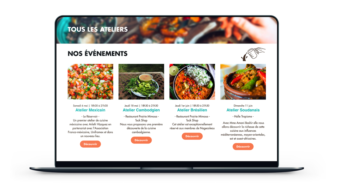 Le second objectif de ce site web était de fédérer des cuisiniers, des associations, des lieux, des gens, autour du projet Blablacooks. Il est également un support de communication et de réassurance pour les visiteurs et les partenaires.