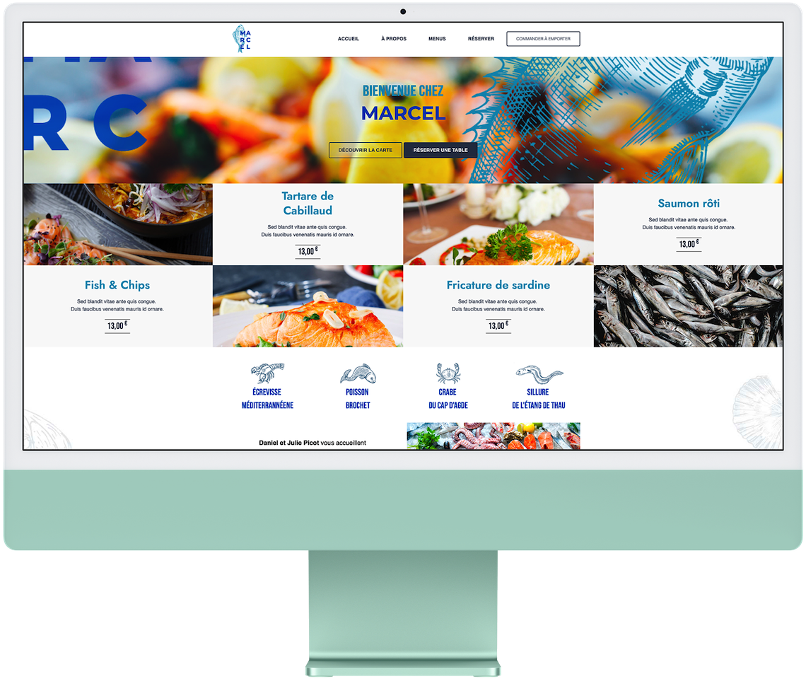 L'objectif à travers la réalisation du site web est de séduire les futurs clients et les encourager à se déplacer dans le restaurant. De les plonger préalablement dans l’univers travaillé et assumé de « chez Marcel ». L’image d’un restaurant est souvent la première étape pour attirer de nouveaux clients.