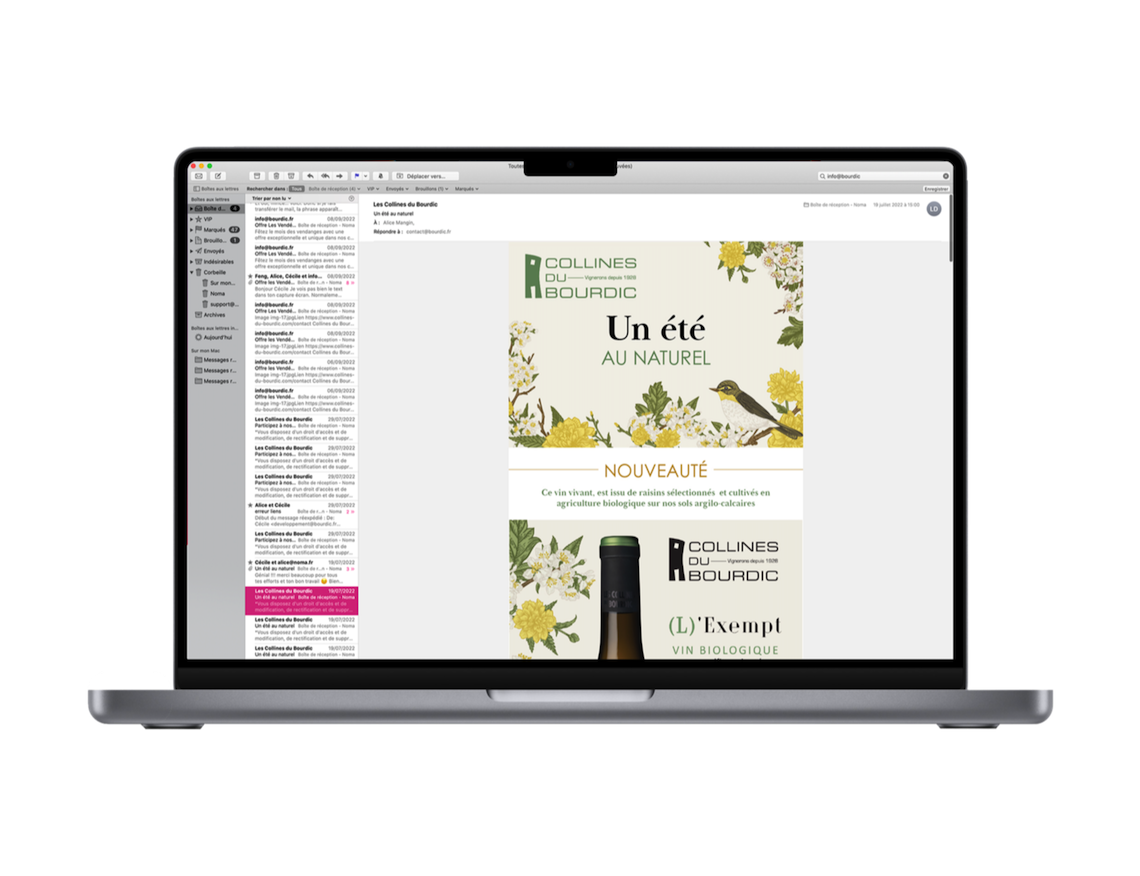 A chacun de ses événements ou pour faire la promotion de ses nouveaux produits, de ses nouvelles offres, Les Colline de Bourdic nous confie la réalisation de ses newsletters à destination de ses clients et prospects.