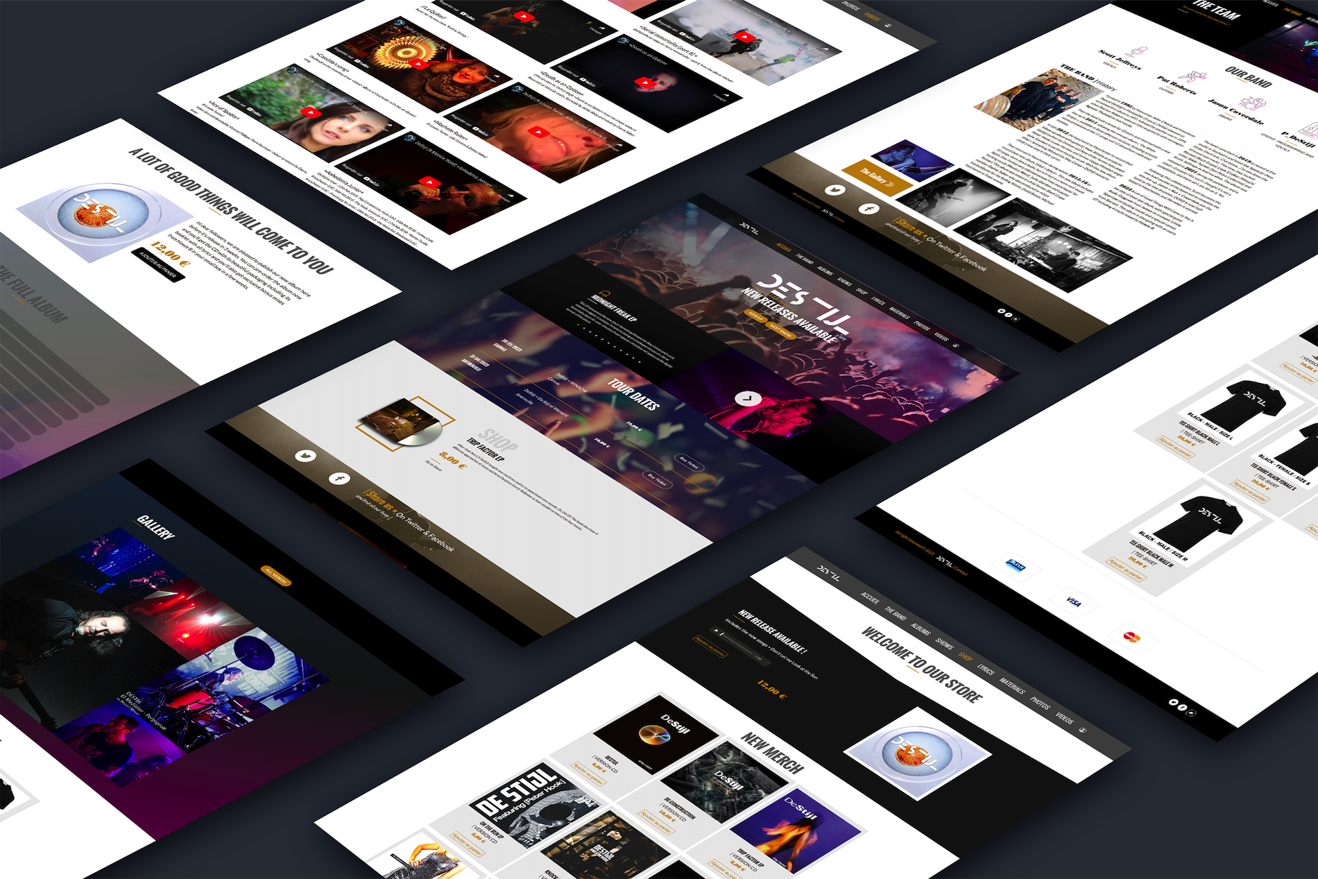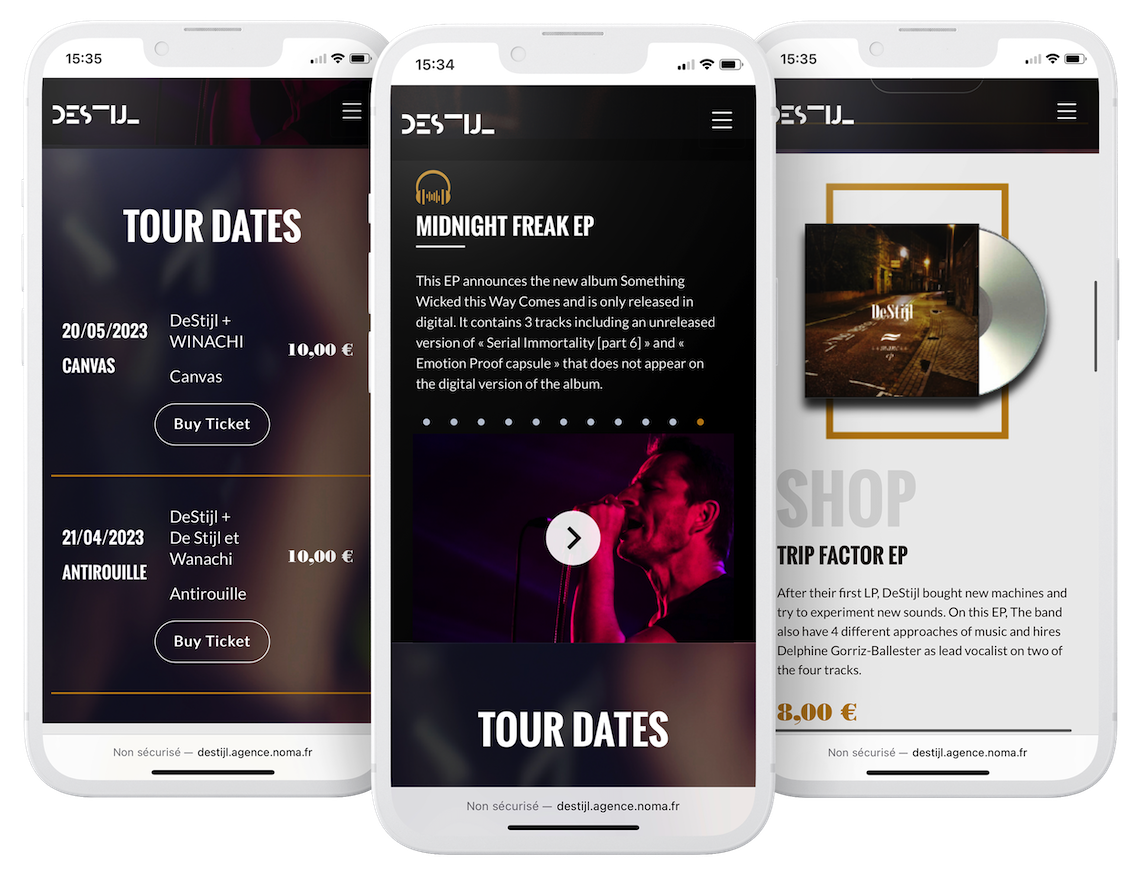 Le groupe de musique Destijl nous a contacté afin de réaliser la refonte de leur site web et de mettre en place une boutique pour leur goodies et leur billeterie.