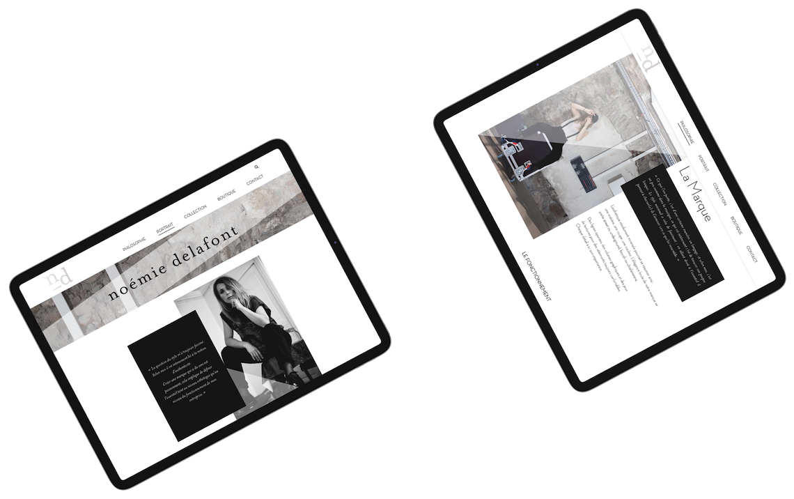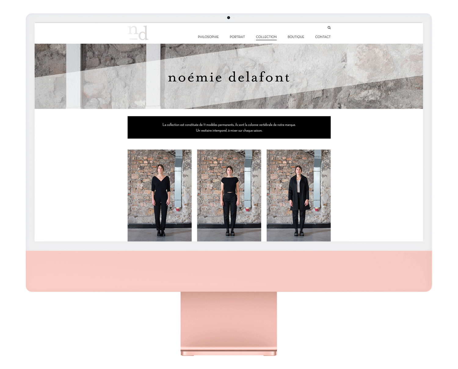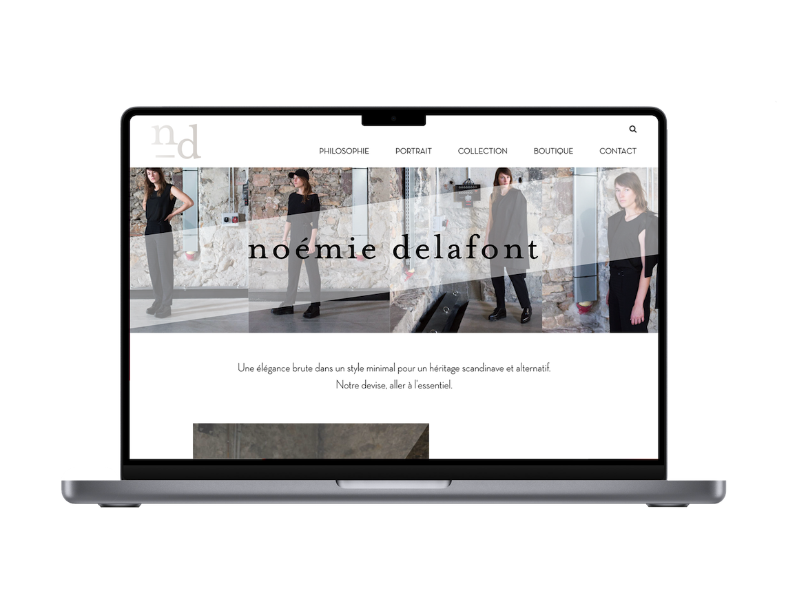 Noémie Delafont, développe sa propre marque de prêt à porter féminin haut de gamme fabriquée en France. Son héritage scandinave l’a toujours influencé dans sa recherche d’épure et de design fort. Le versant alternatif de sa culture cévenole est lui aussi au coeur de sa démarche : emprunter sa propre voie, inventer chaque jour son travail et porter/créer une marque indépendante. En 2023, Noémie Delafont souhaite présenter sa collection et nous confie la réalisation de son site vitrine et de ses supports print.