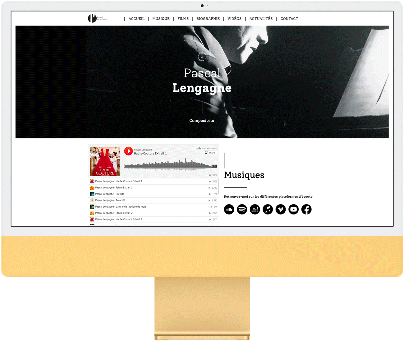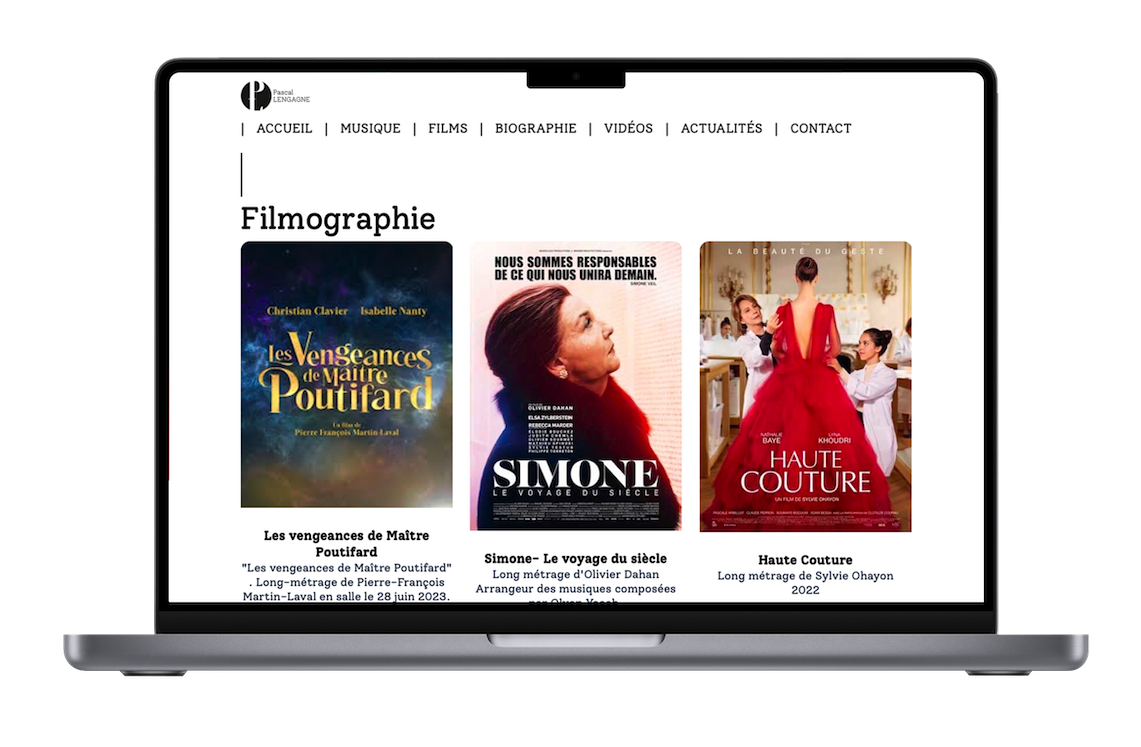 Compositeur de musique de films depuis plus de 20 ans, Pascal Lengagne souhaitait moderniser son site web. L'idée principale était de rester dans des couleurs trés sobres pour mettre en valeur ses créations Musicales.